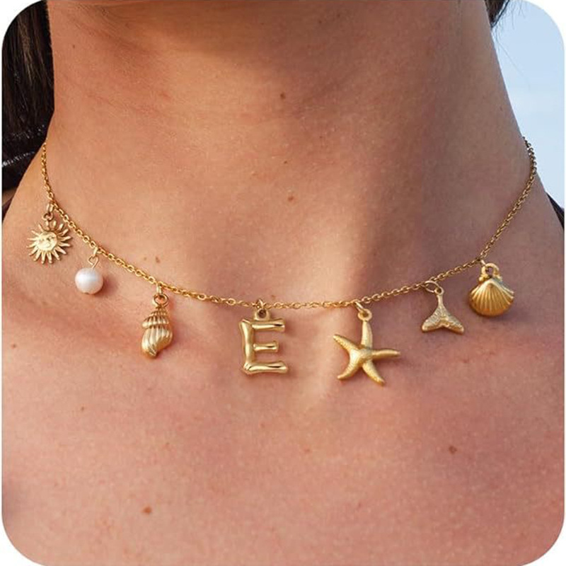 26 Bamboo Letter Necklace Starfish Shell Conch