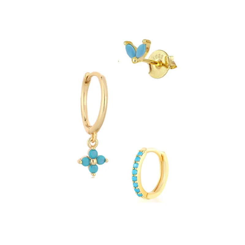 3PCS Exquisite Green Zircon Hanging Earrings Set for Women Stainless Steel Flower Dangle Earring Cartilage Piercing Jewelry