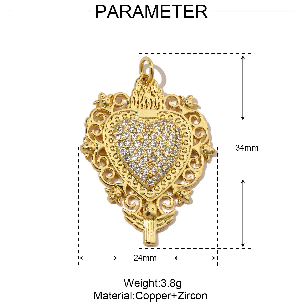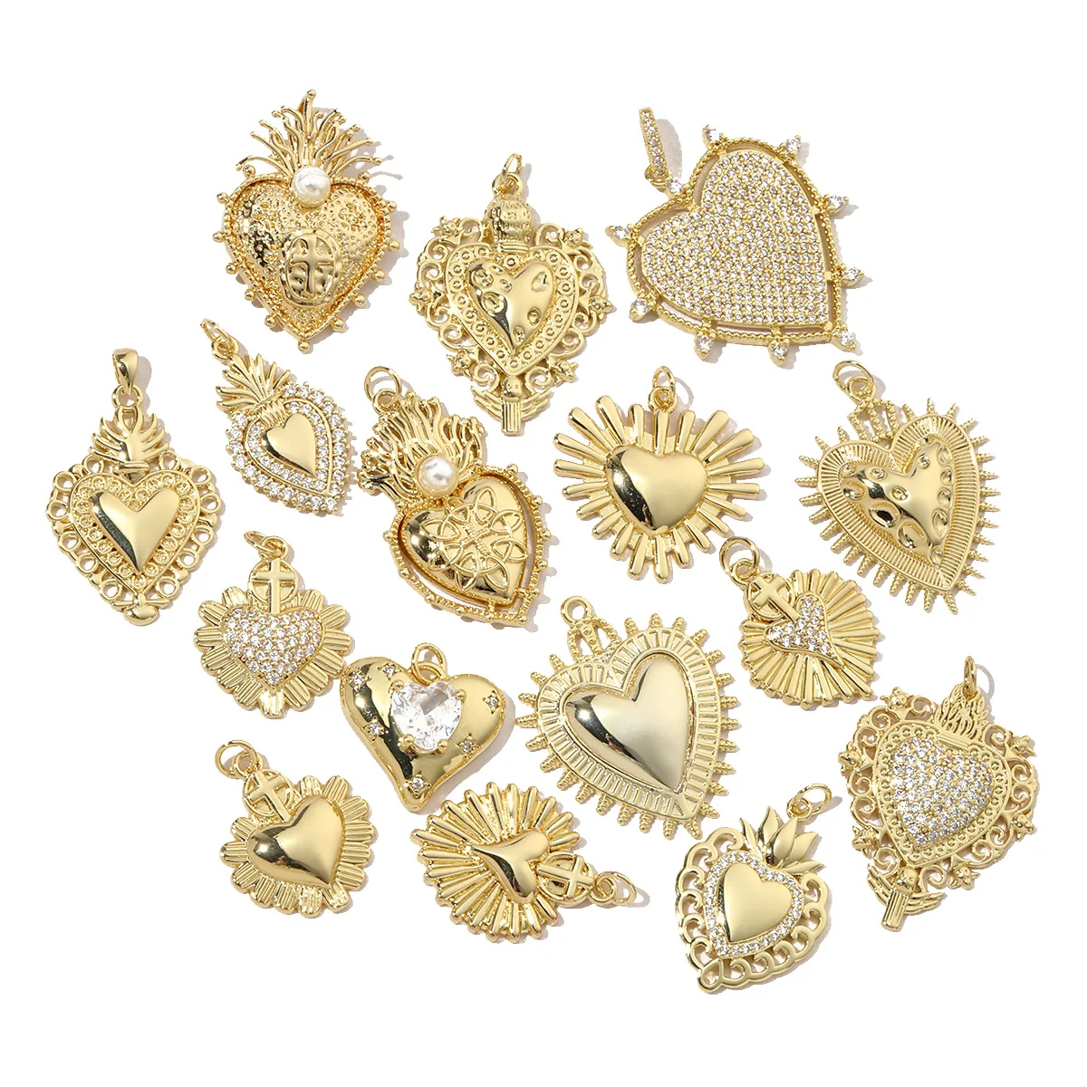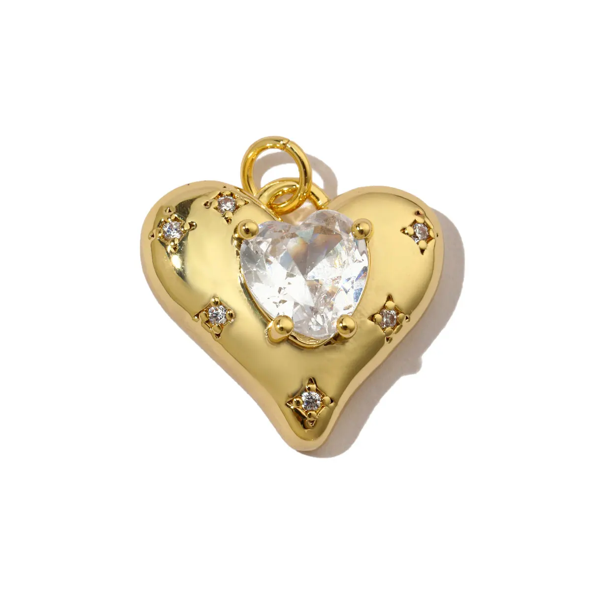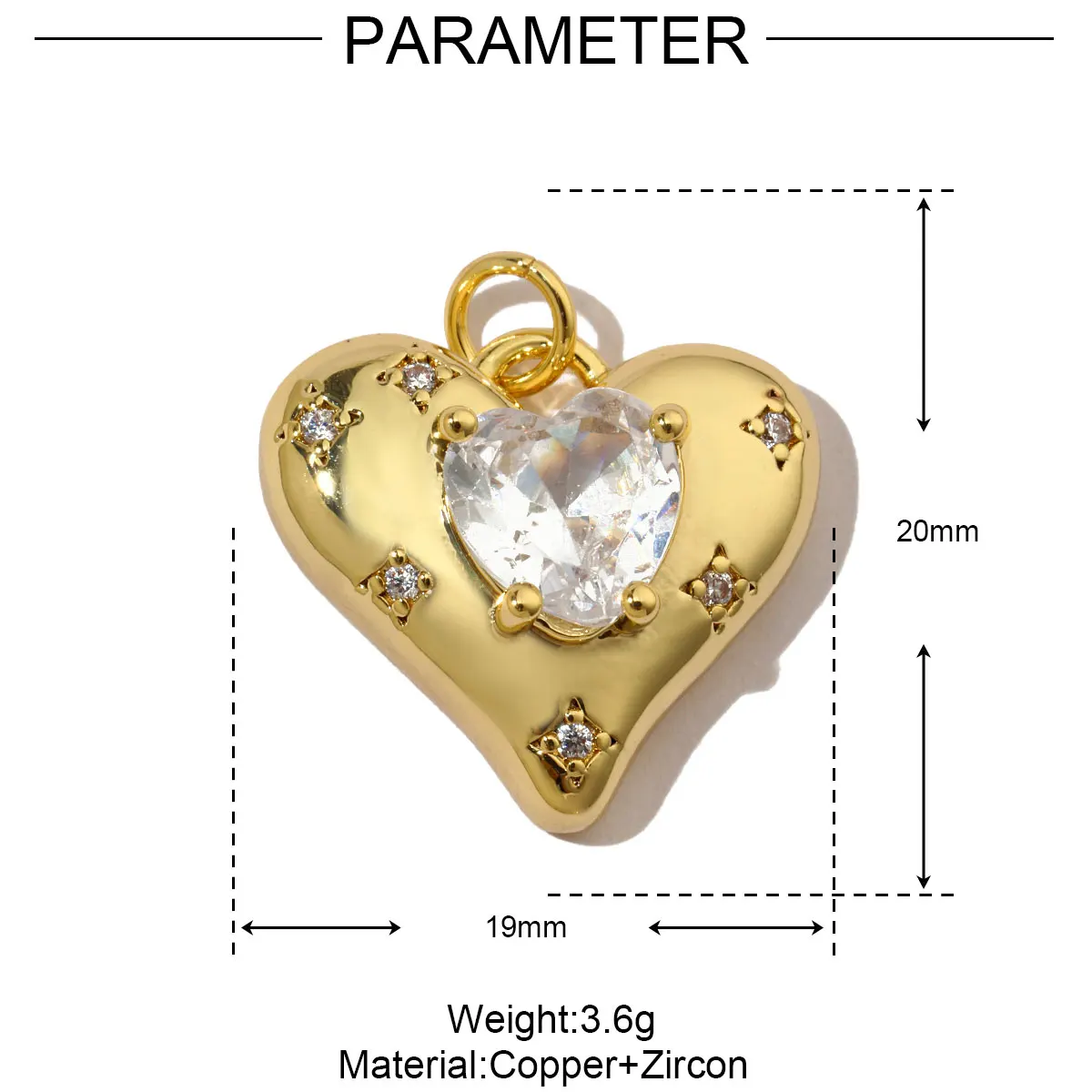 3pcs/Lot Coper Zircon Irregular Heart Necklace Pendant Women 18k Real Gold Color Love DIY Earring Charms Jewelry Findings