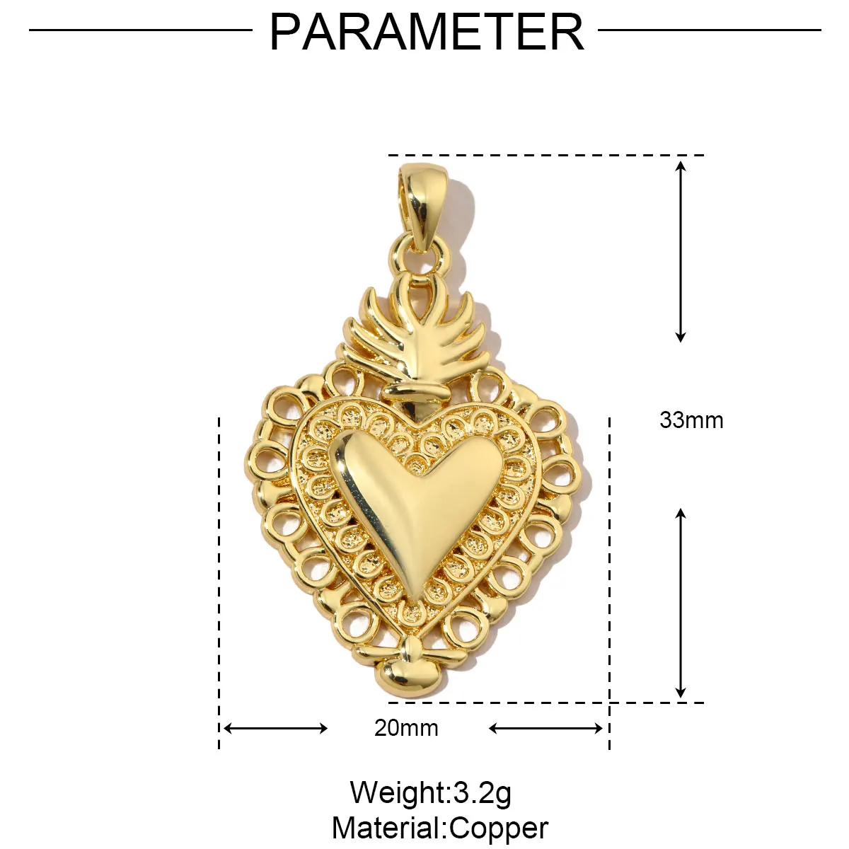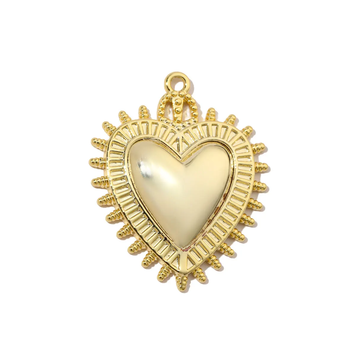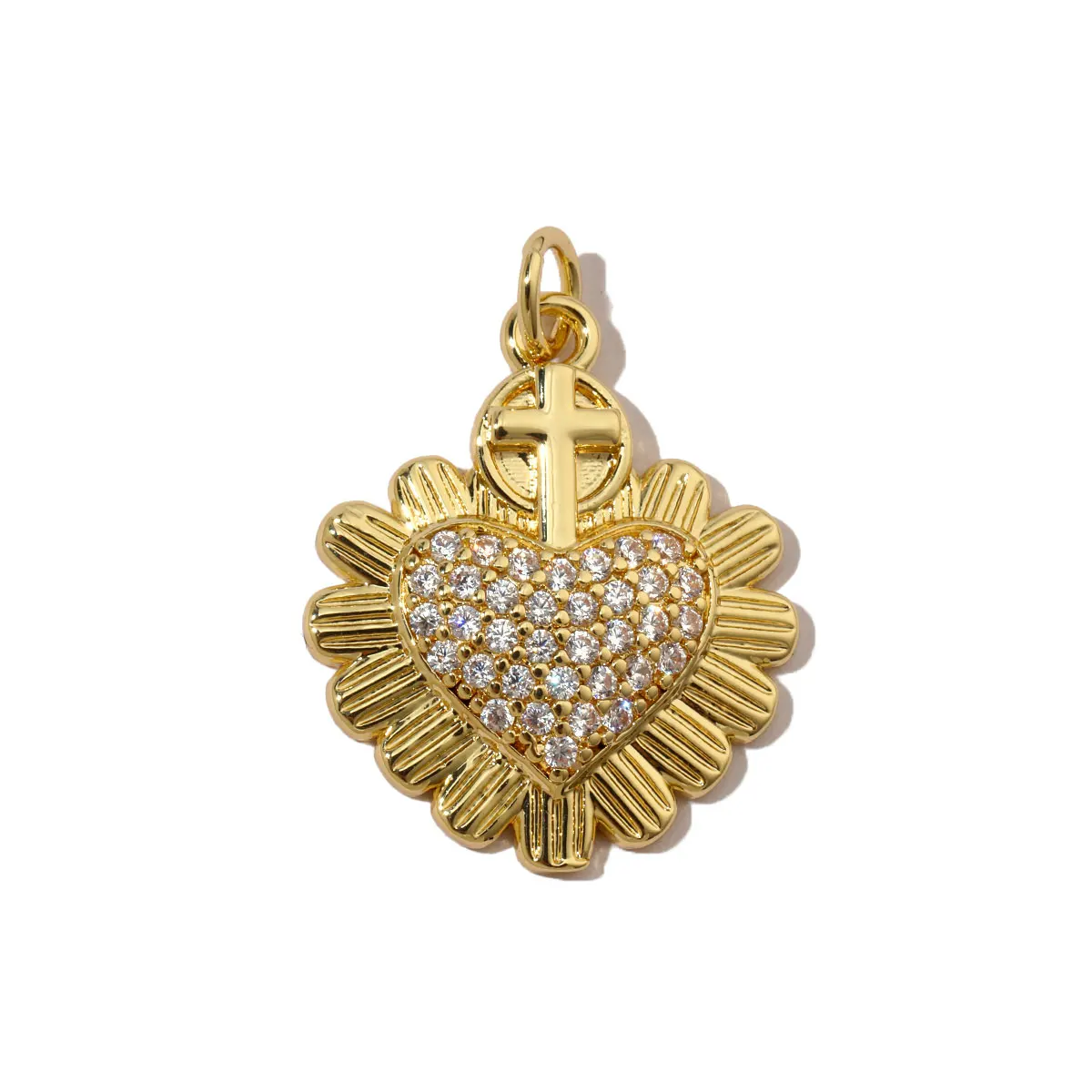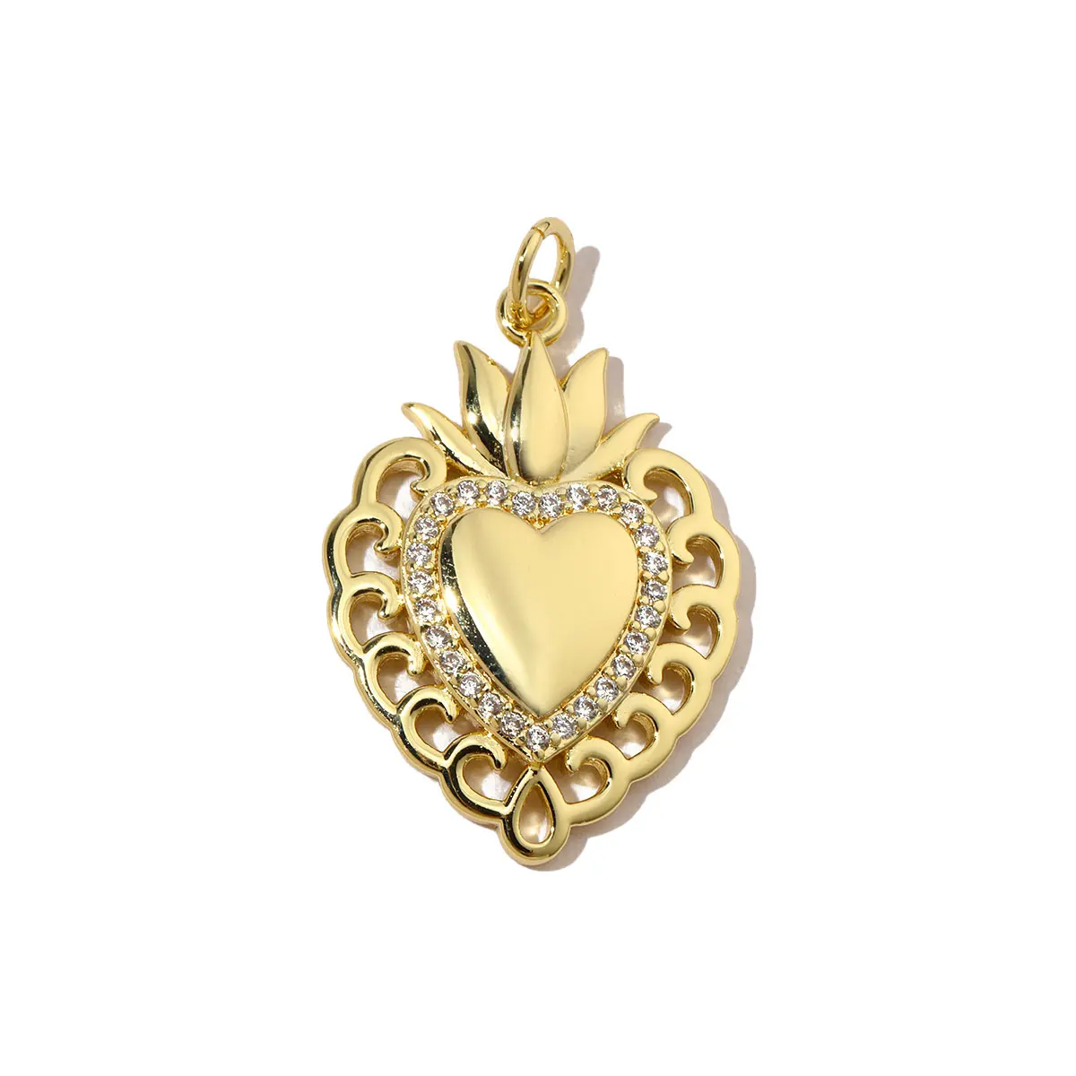 3pcs/Lot Coper Zircon Irregular Heart Necklace Pendant Women 18k Real Gold Color Love DIY Earring Charms Jewelry Findings