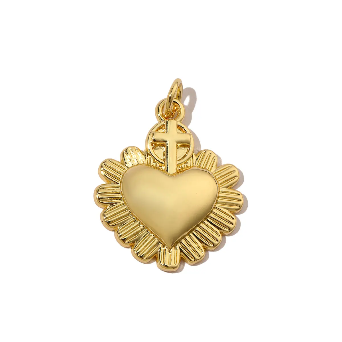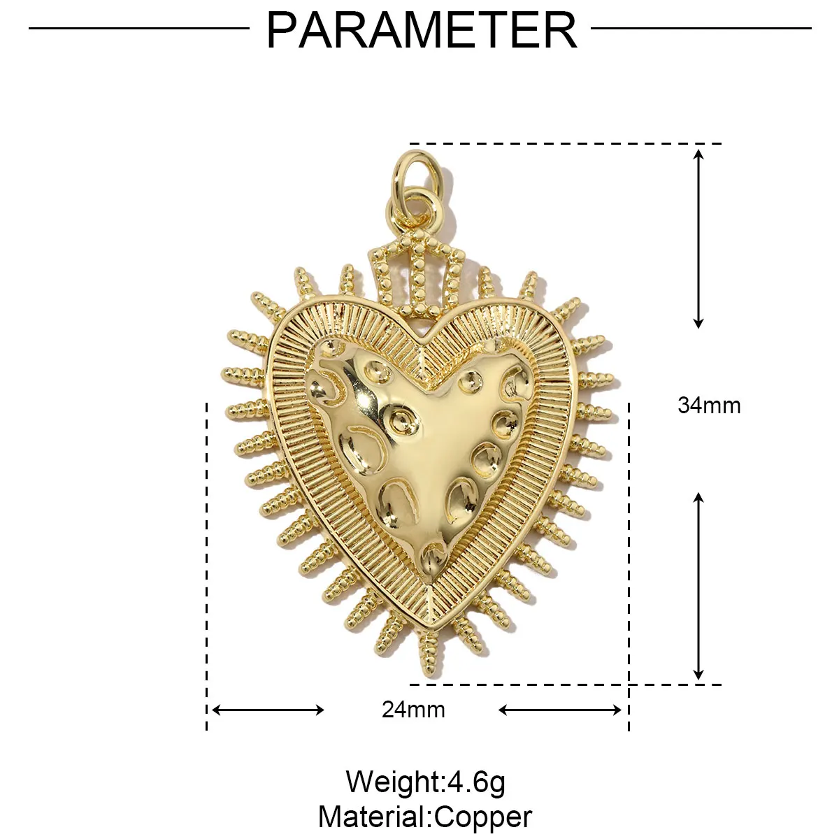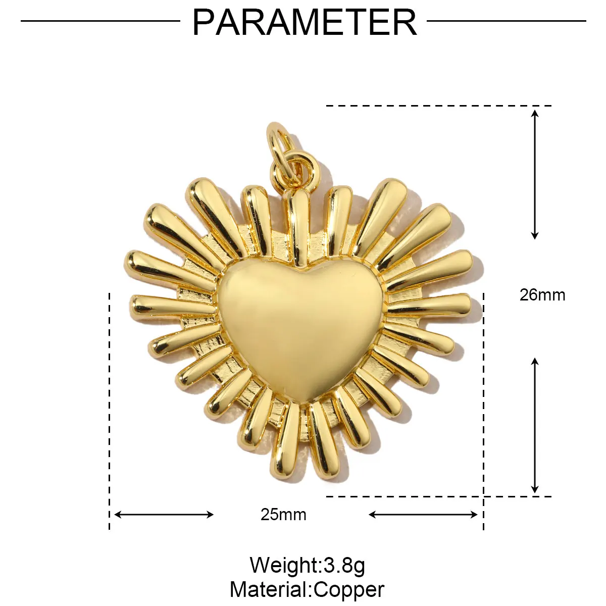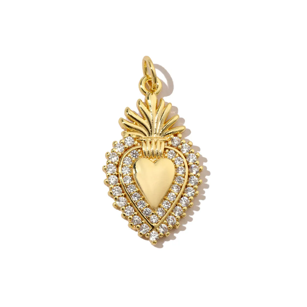 3pcs/Lot Coper Zircon Irregular Heart Necklace Pendant Women 18k Real Gold Color Love DIY Earring Charms Jewelry Findings