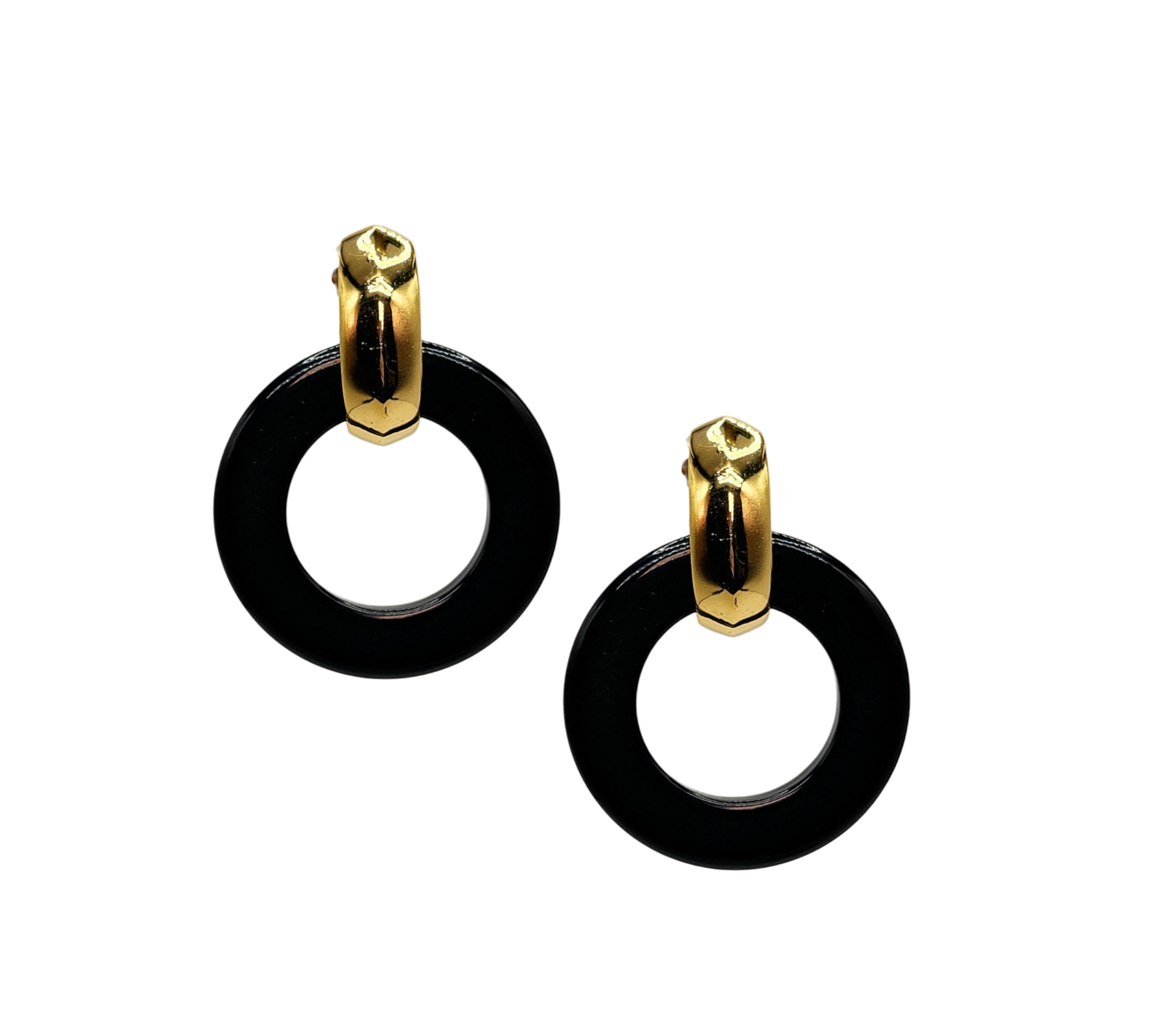 Elevate your accessory game with these stunning Black Resin Doorknocker Earrings. Exuding an air of sophistication and modern elegance, they are the perfect statement piece for any occasion, whether you’re dressing up for a night out or adding a touch of flair to your everyday outfit. Their unique design instantly draws attention and sparks conversation, making them a must-have addition to your jewelry collection.