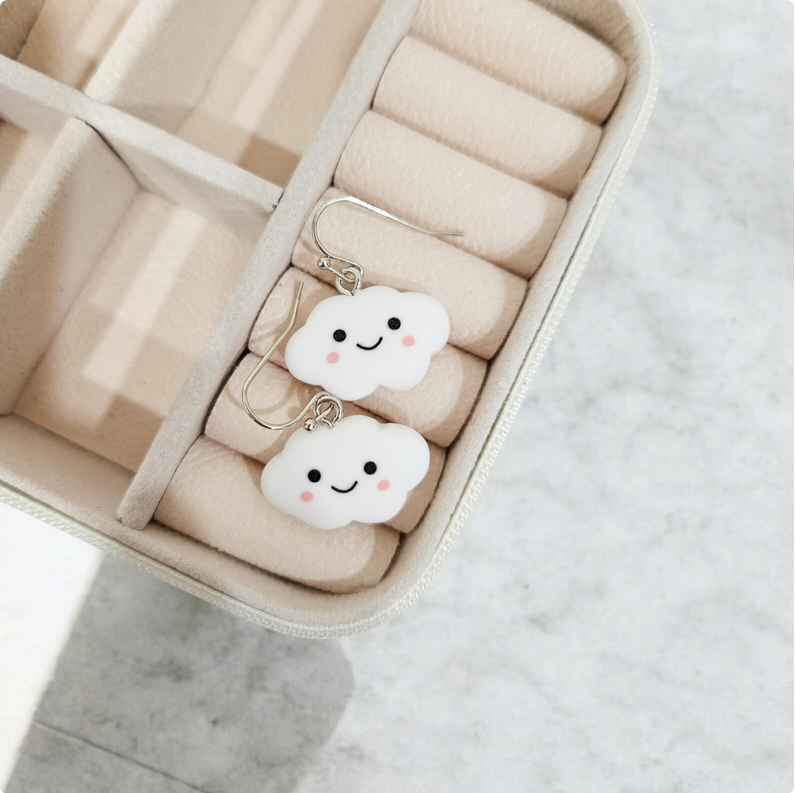 Introducing our Cute Cloud Dangle Drop Earrings. These whimsical earrings are handcrafted from polymer clay and feature a playful cloud design. They're perfect for adding a touch of fun and fantasy to any outfit. Whether you're dressing up for a special occasion or just want to add some personality to your everyday look, these earrings are sure to bring a smile to your face.