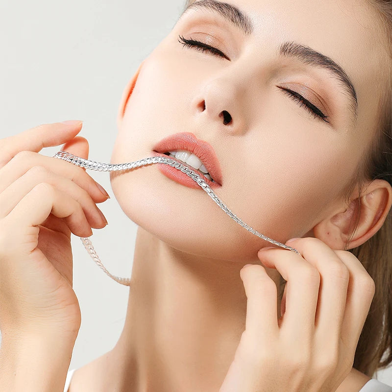 DOTEFFIL 925 Sterling Silver 6mm Side Chain 16/18/20/22/24 Inch