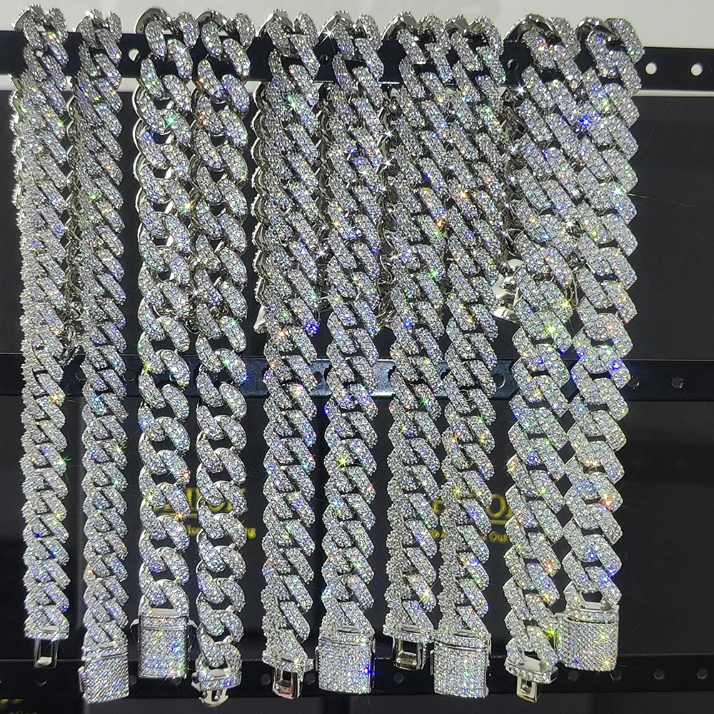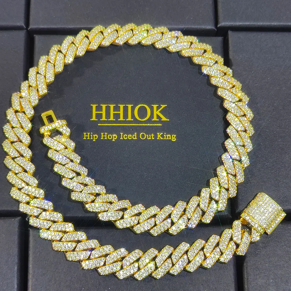 Drop Shipping Hip Hop Cuban Link Chain Necklace Silver/18k Gold Plated 10/12/14/15/20mm Iced Out Diamond CZ Gift for Him/Her