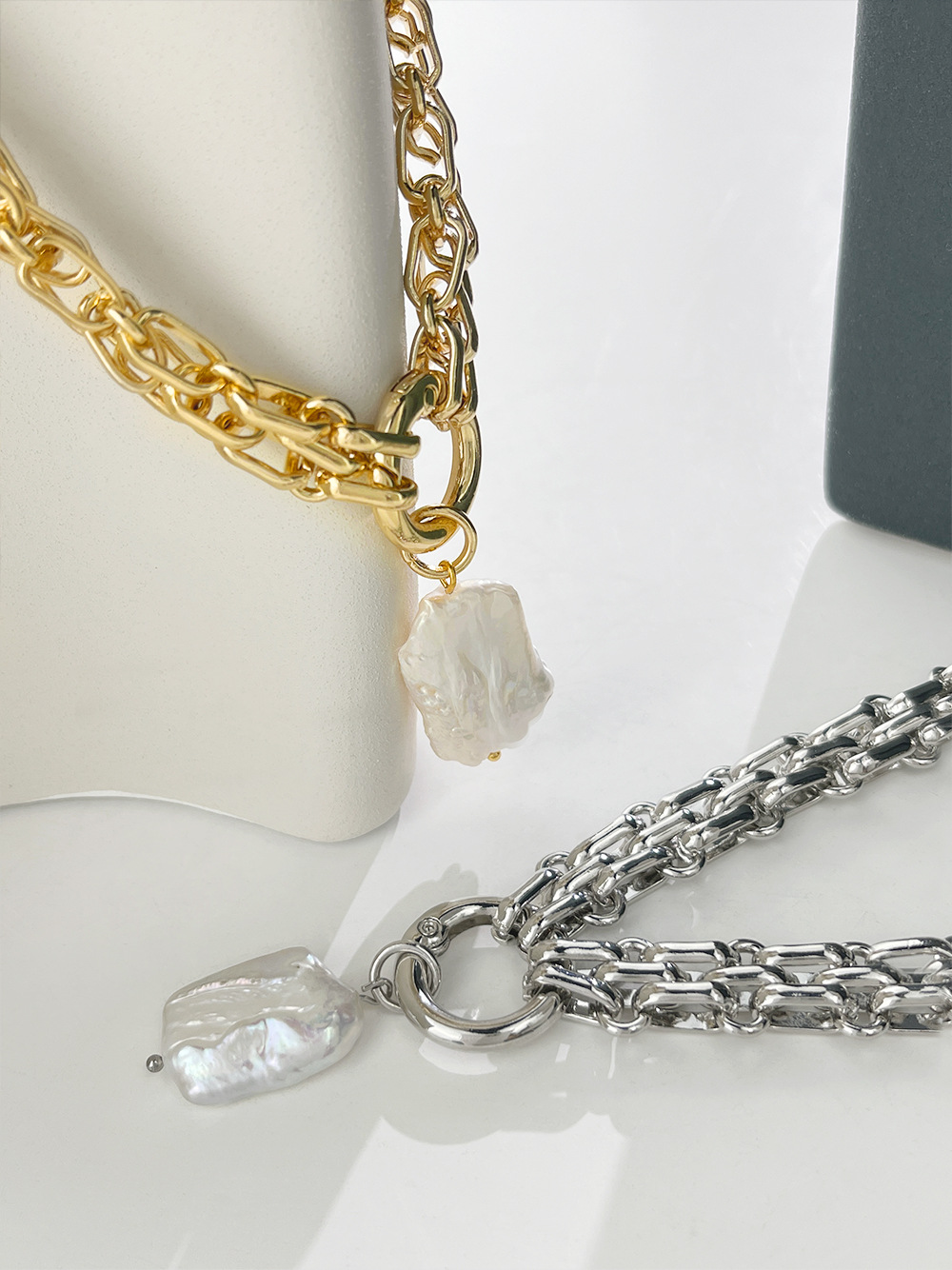 Exaggerated Woven Natural Freshwater Square Pearl Pendant