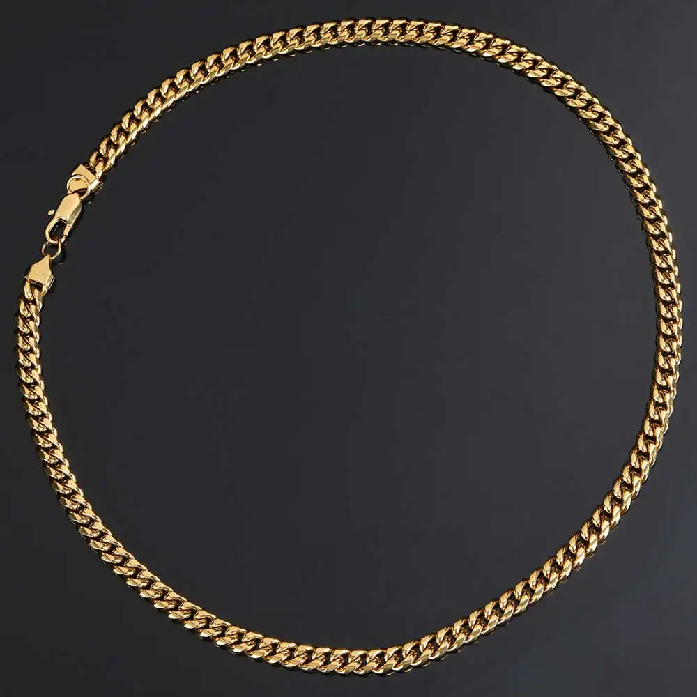 Hip Hop 4mm 6mm 8mm Gold Plated Jewelry Miami Stainless Steel Link Cuban Chain Necklace for Men Women