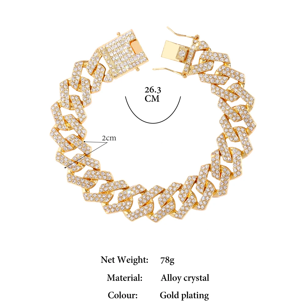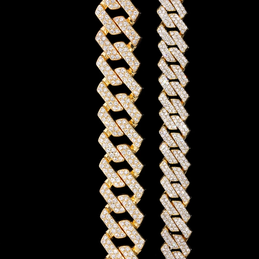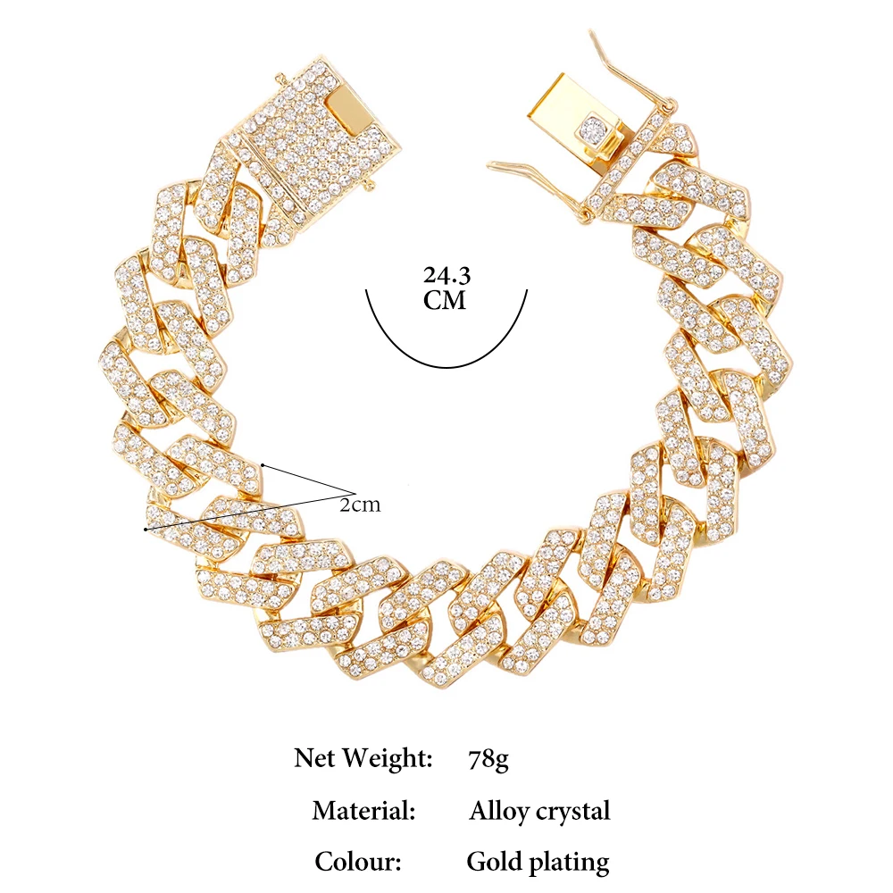 Hip Hop Men Chain 20MM Prong Cuban Chain 2 Row Iced Out Bling Rhinestones Miami Cuban Link Necklaces For Men Jewelry Iced Chain