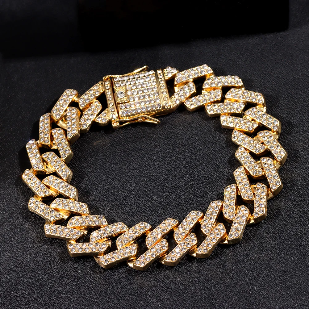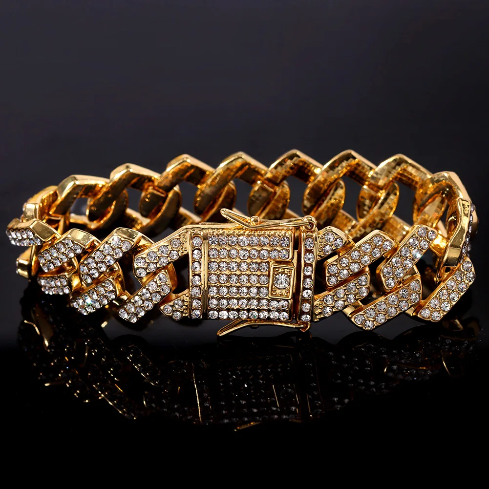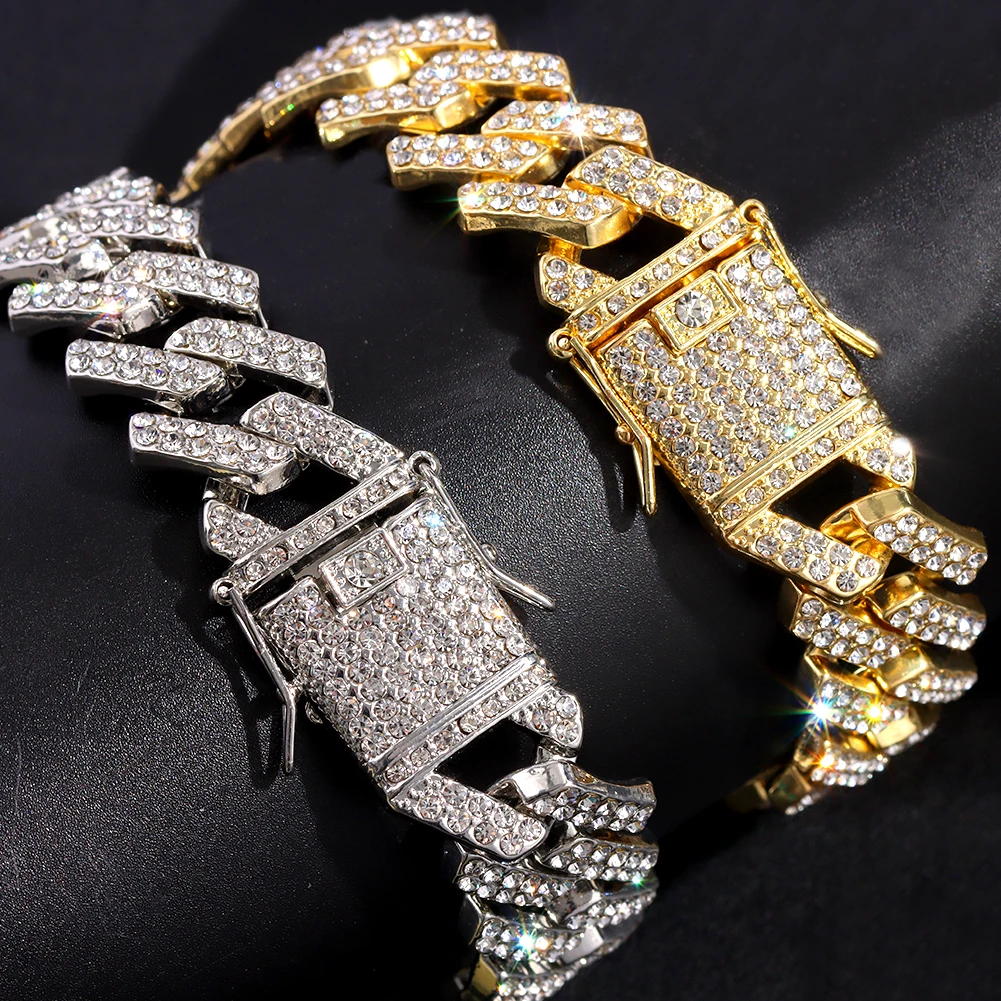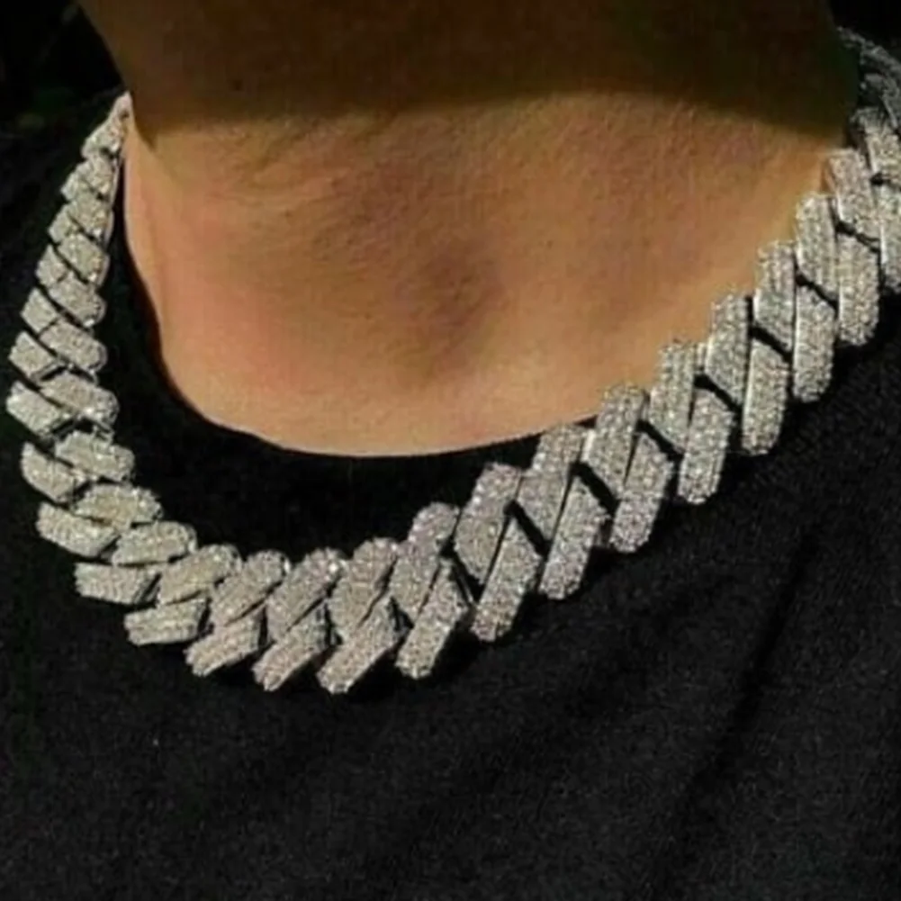 Hip Hop Men Chain 20MM Prong Cuban Chain 2 Row Iced Out Bling Rhinestones Miami Cuban Link Necklaces For Men Jewelry Iced Chain