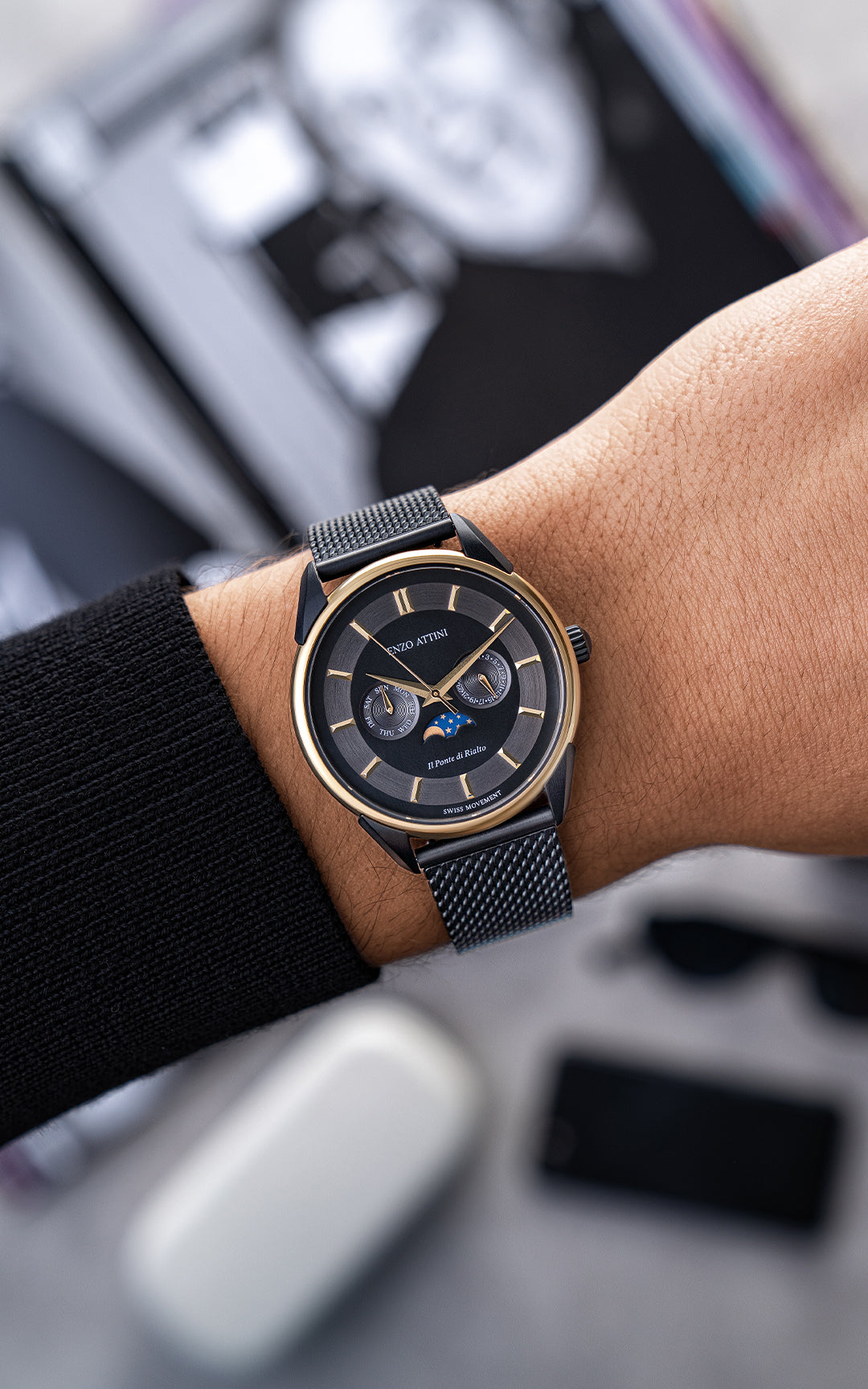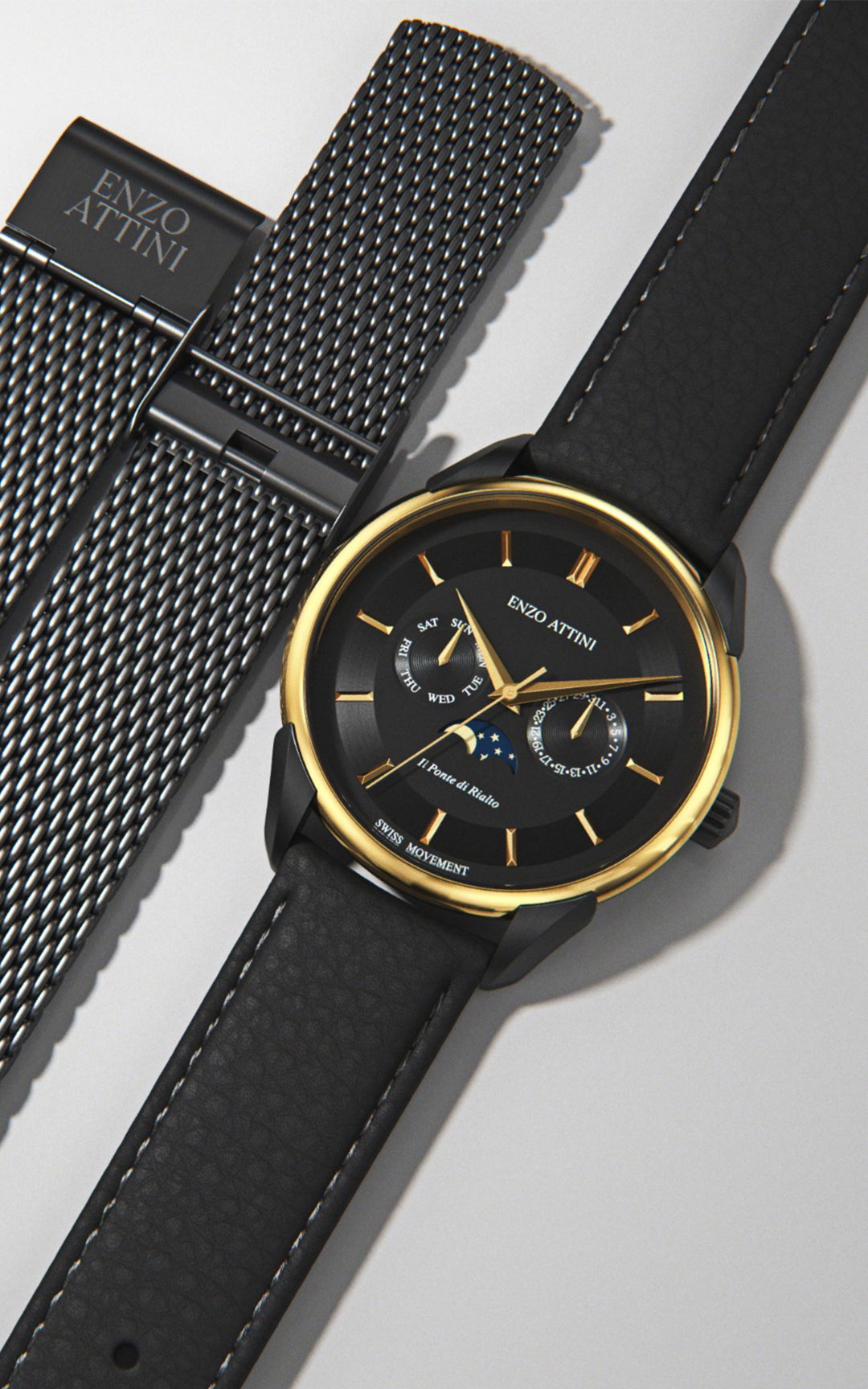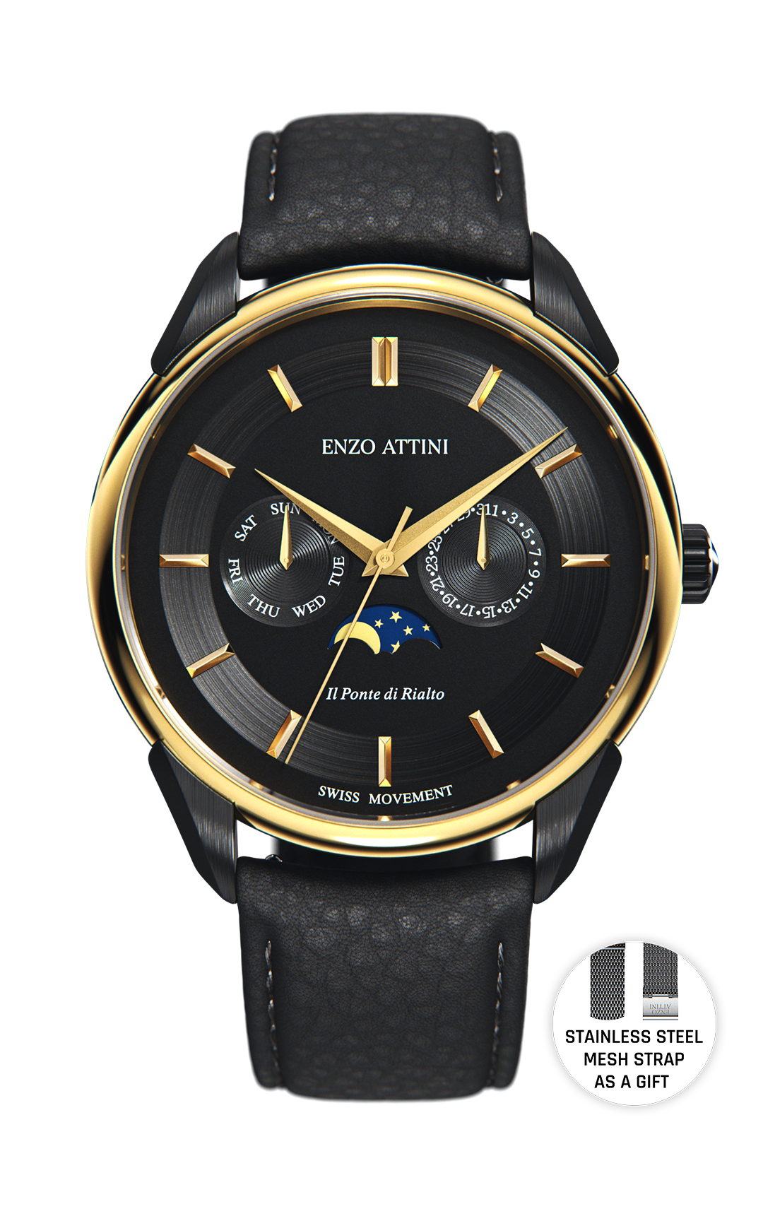 • STRAPS : Italian Leather strap, black color, size 20mm x 18mm, adjustable, fits best for 14-23cm wrists. Mesh Strap, Black Color, Stainless steel 316L, one size fits all