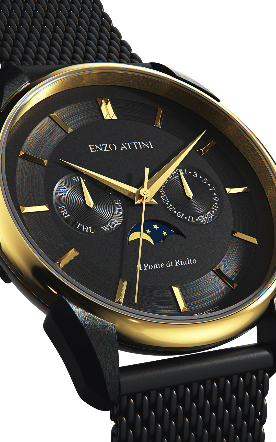 • FUNCTIONS : Hour, Minutes, Date, Month & Moonphase Function at 6 o’Clock