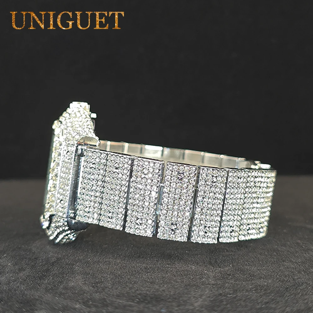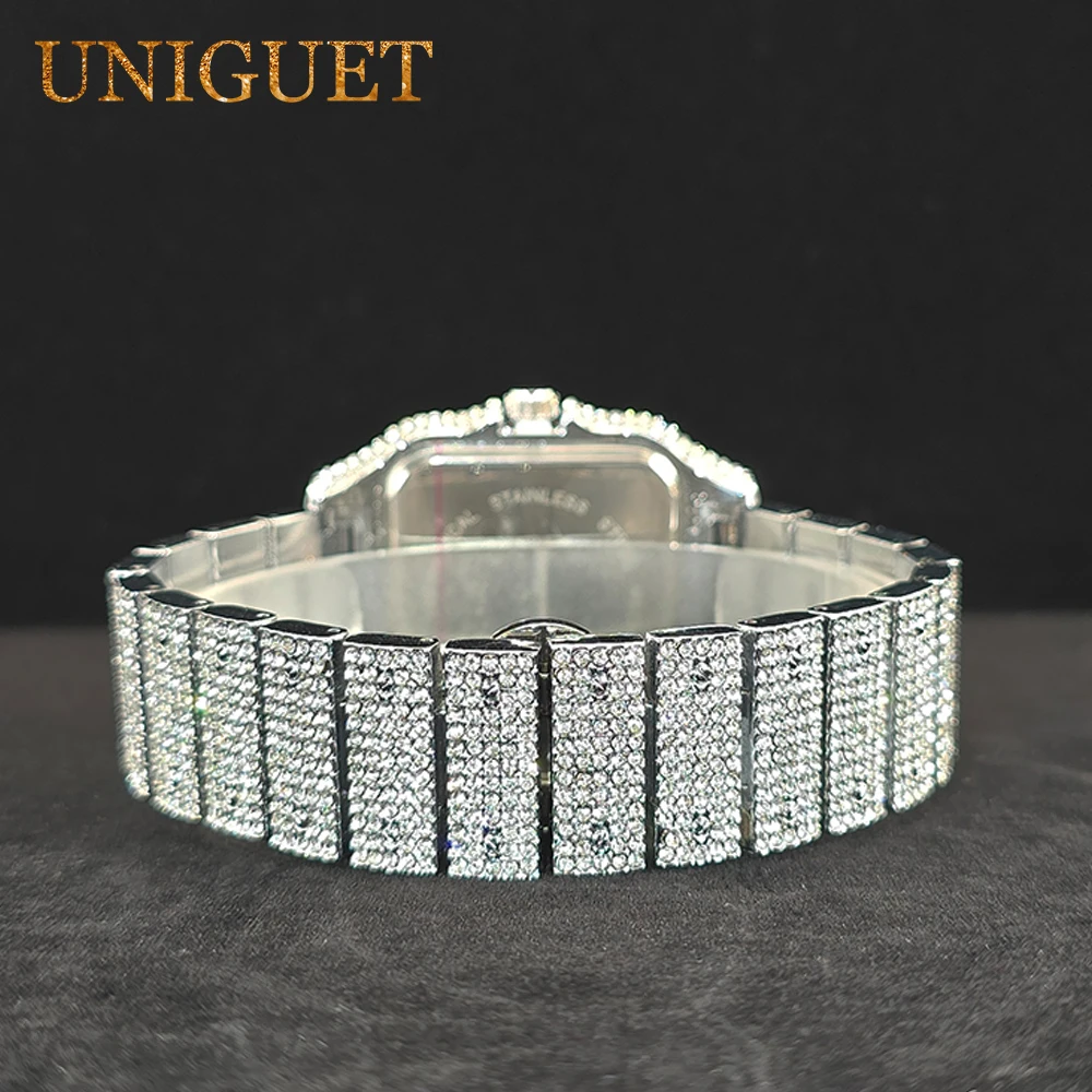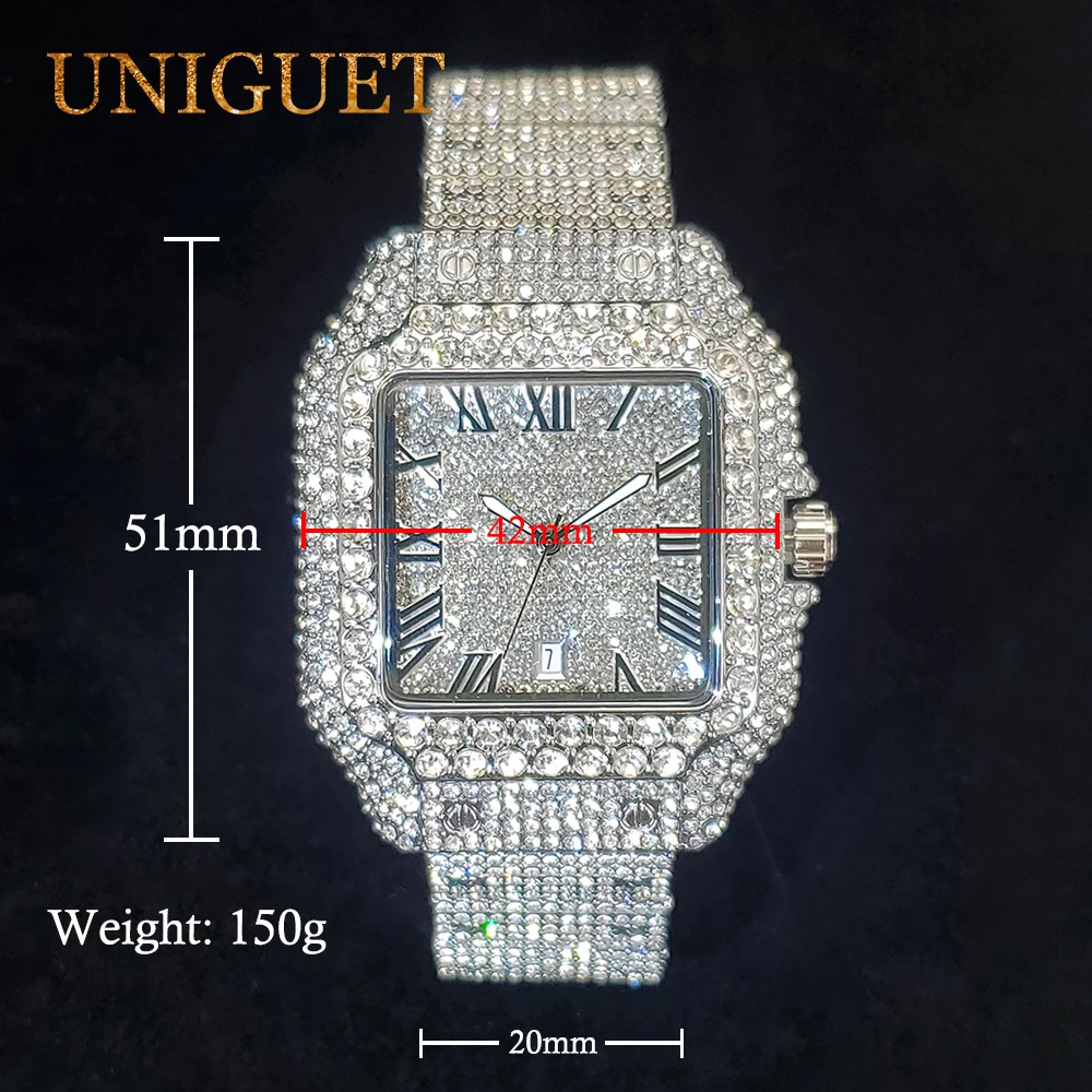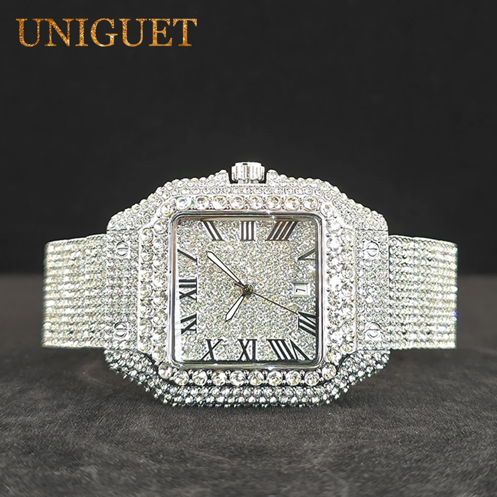 Men's Gold Watch Iced Diamond Hip Hop Square Design Wastches For Men Waterproof Calendar Fashion Luxury Wristwatches New In
