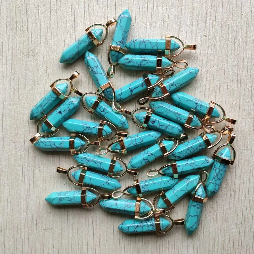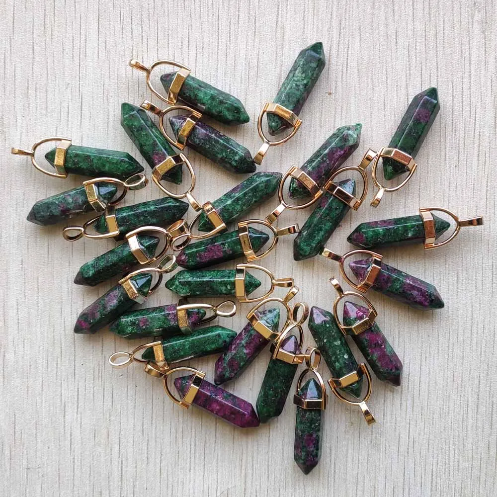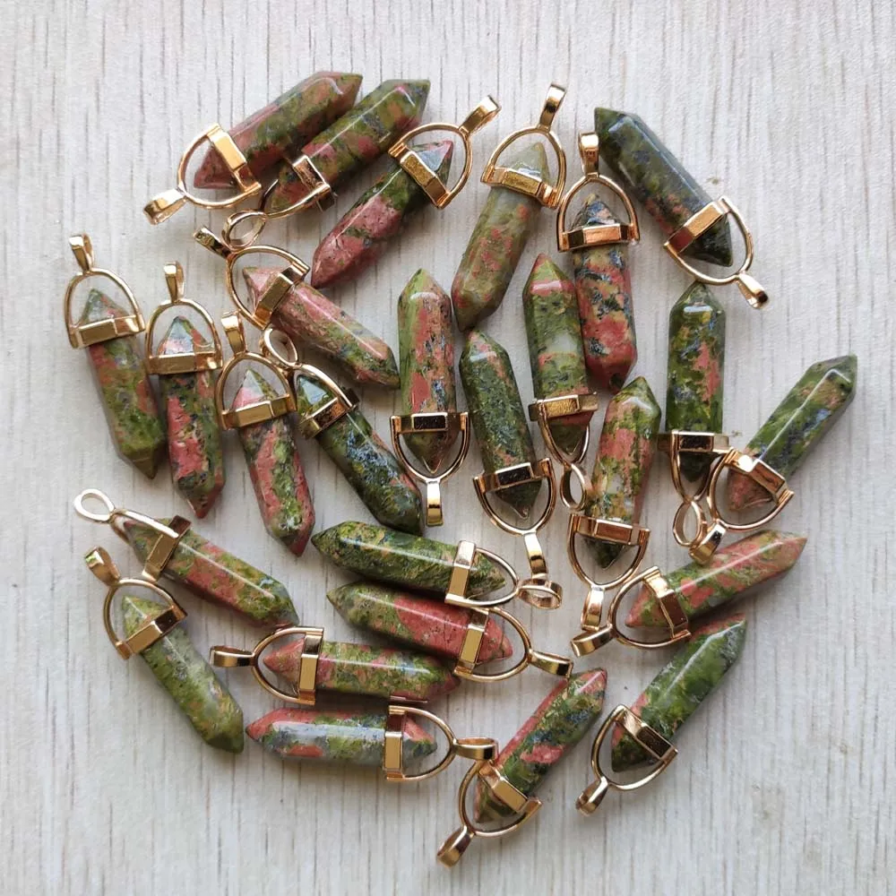Natural Gem stone Quartz crystal green aventurine pendulum pillar pendants for jewelry making 24pcs/lot Wholesale free shipping
