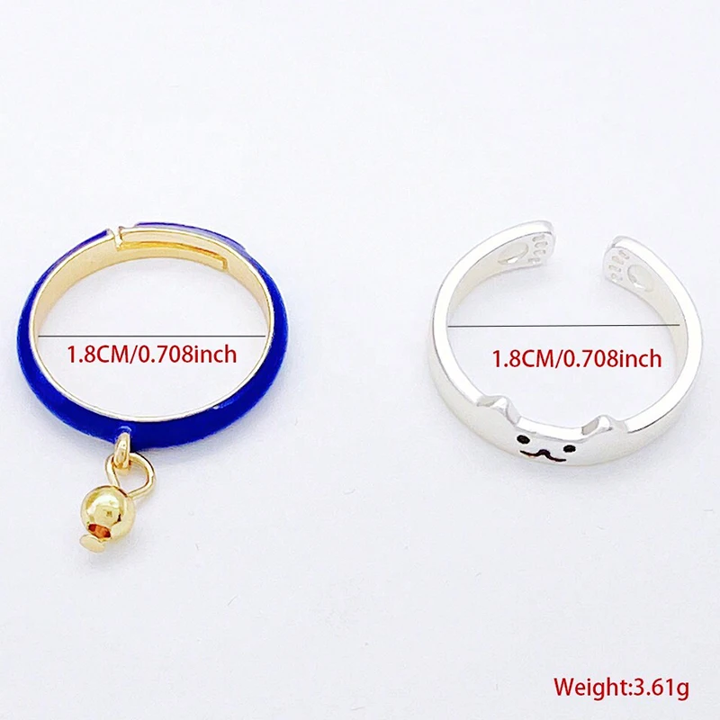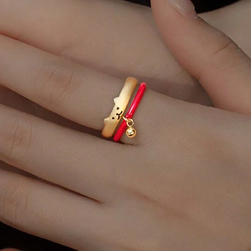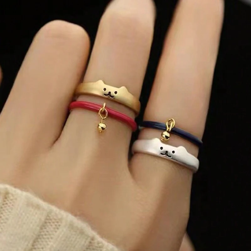 New Japanese Open Adjustable Ring Cute Cat Bell Cat Claw Oil Dropping Enamel Ring Decorative Gift