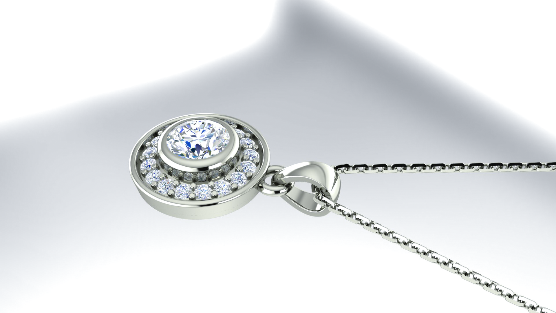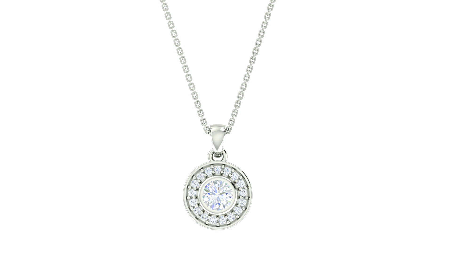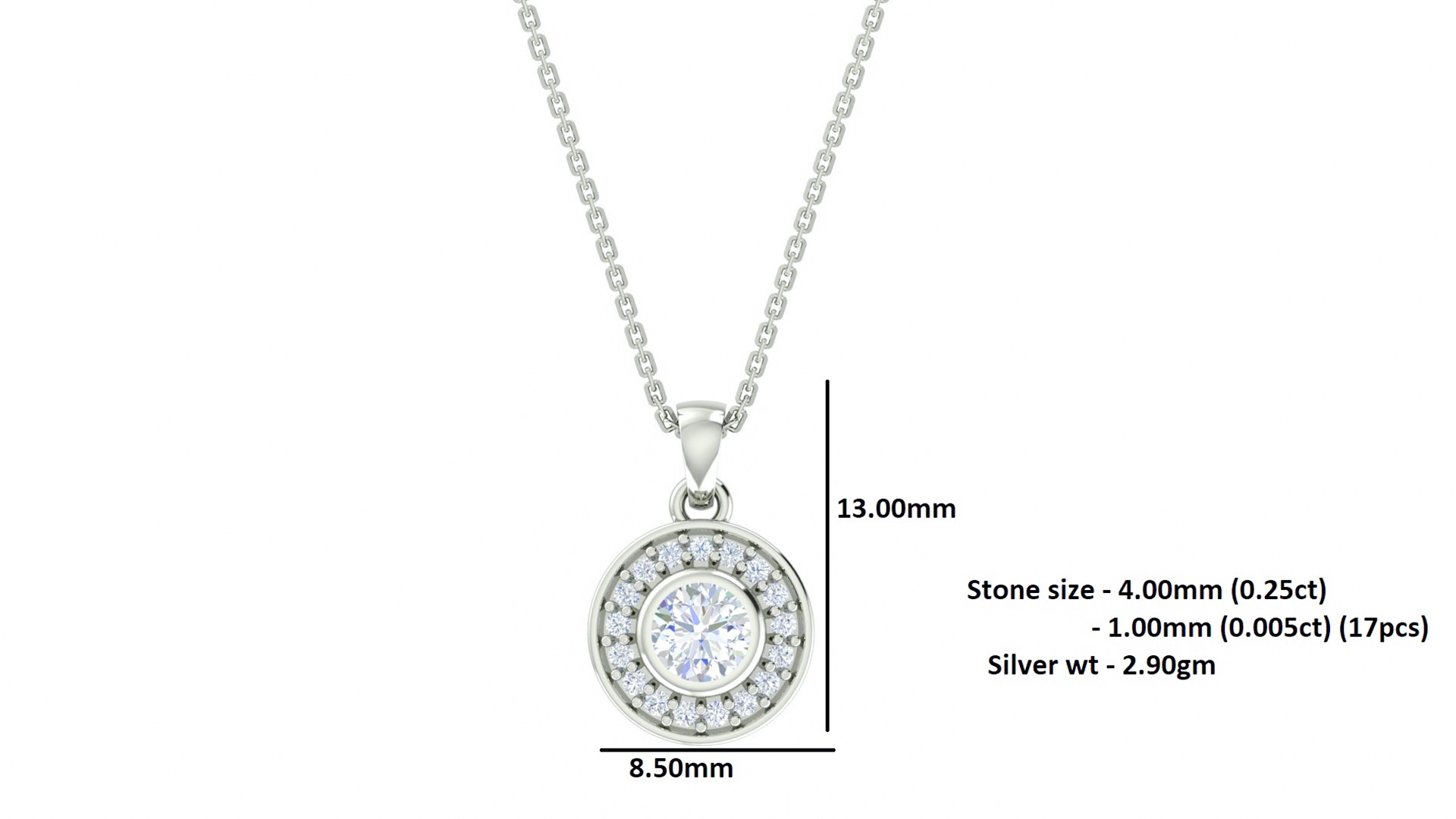 RKC Silver Halo 0.33 CT Moissanite Round Cut Women Pendant 925 Silver Wt 2.9 gm with Height 13mm & Box Chain
