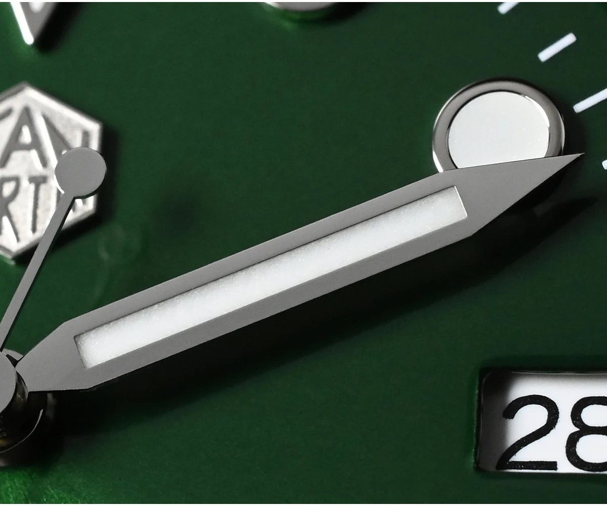 Dial Color: Sunray Green Dial, Enamel Black Dial, Applied Indices,
