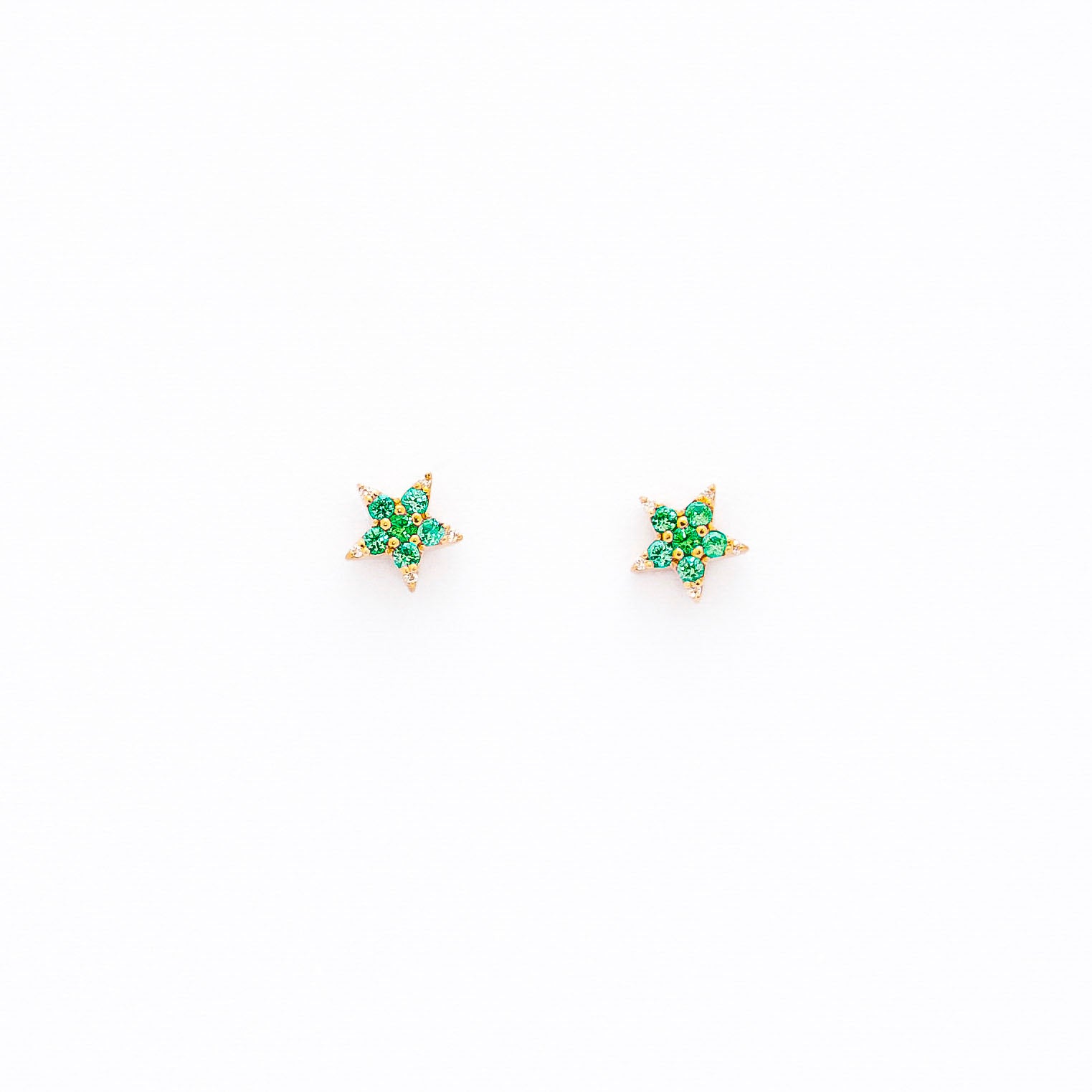 Sweet Stars Studs - Emeralds and Diamond in 14k Gold - Made to Order
