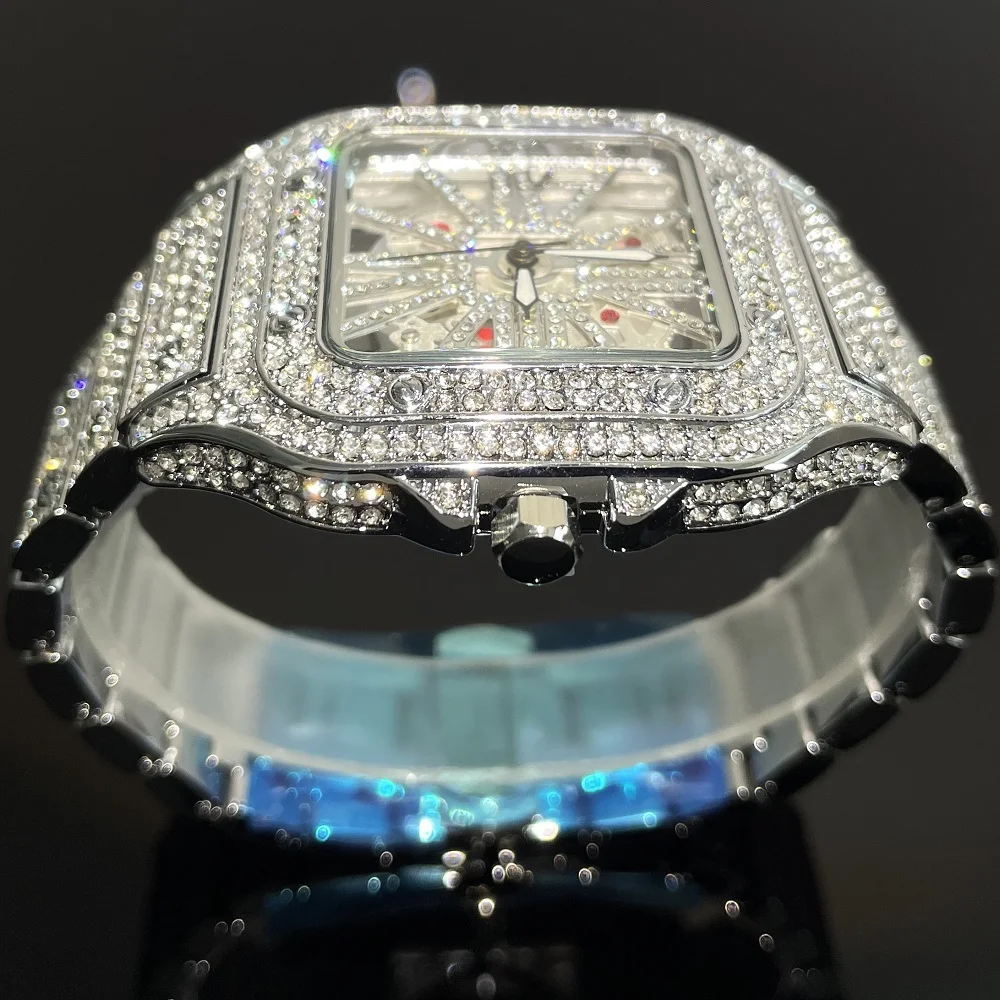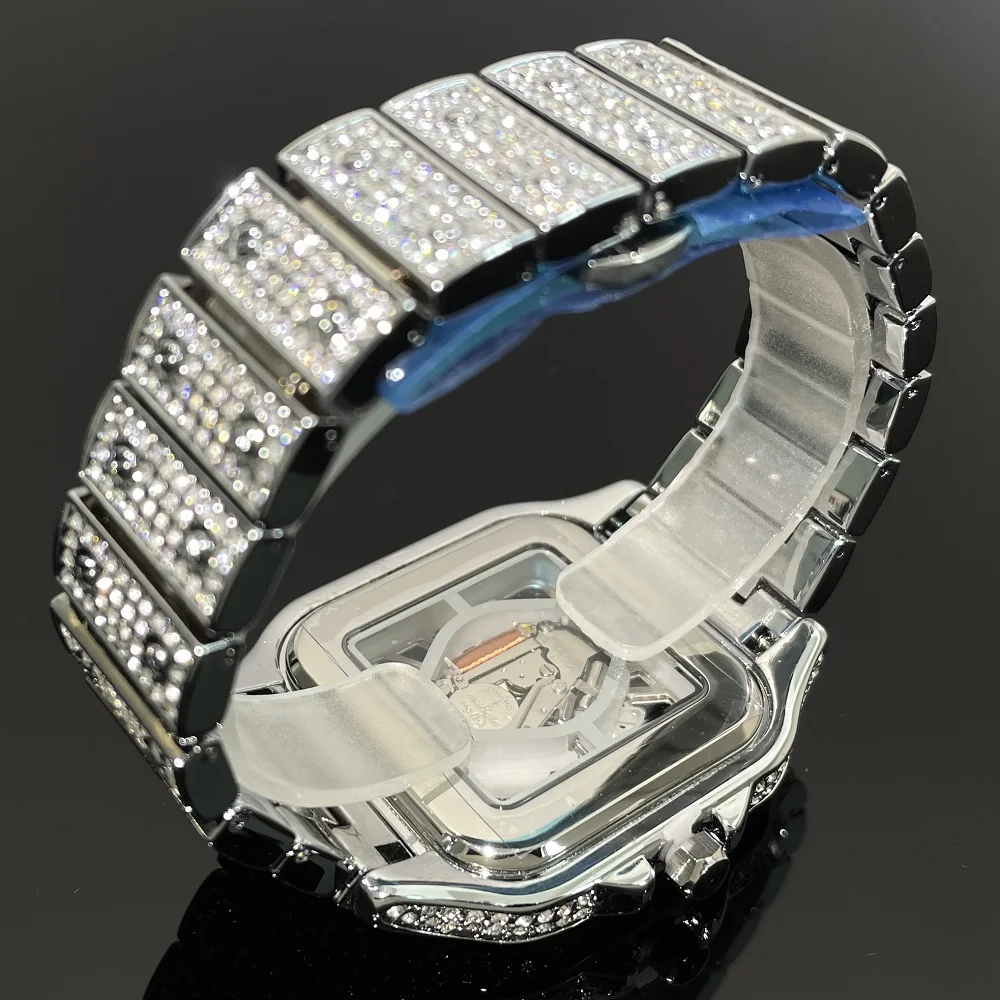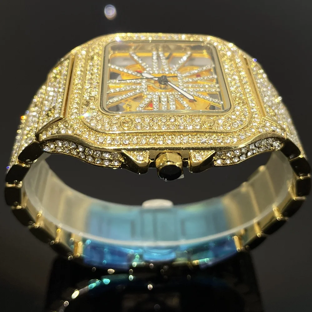 Top Luxury Gold Watch For Men Hip Hop Iced Diamond Square Quartz Wristwatches Fashion Hollow Waterproof Clocks Male Reloj 2025