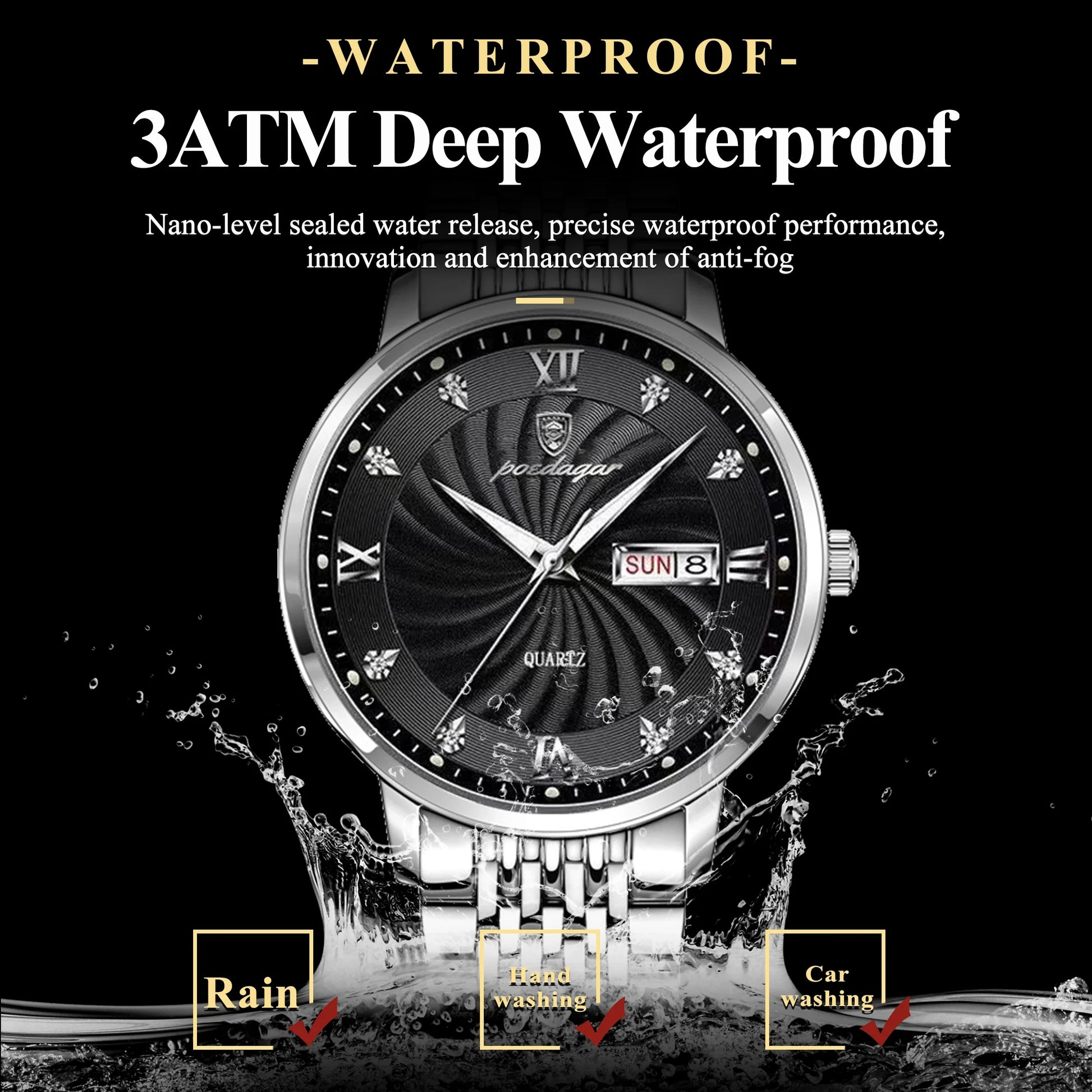 Men's Quartz POEDAGAR Wristwatch Stainless Steel